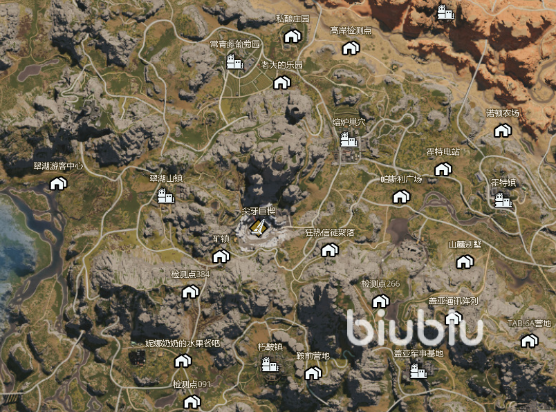 尖牙巨楔警戒区在整个地图的西部,目前游戏仅有五个巨楔,这些地方虽然都比较危险,但是资源也同样很丰富。如果你想前往的话,具体的位置可以凭借插图来进行比对,目前来看并不建议开荒期就贸然前去。