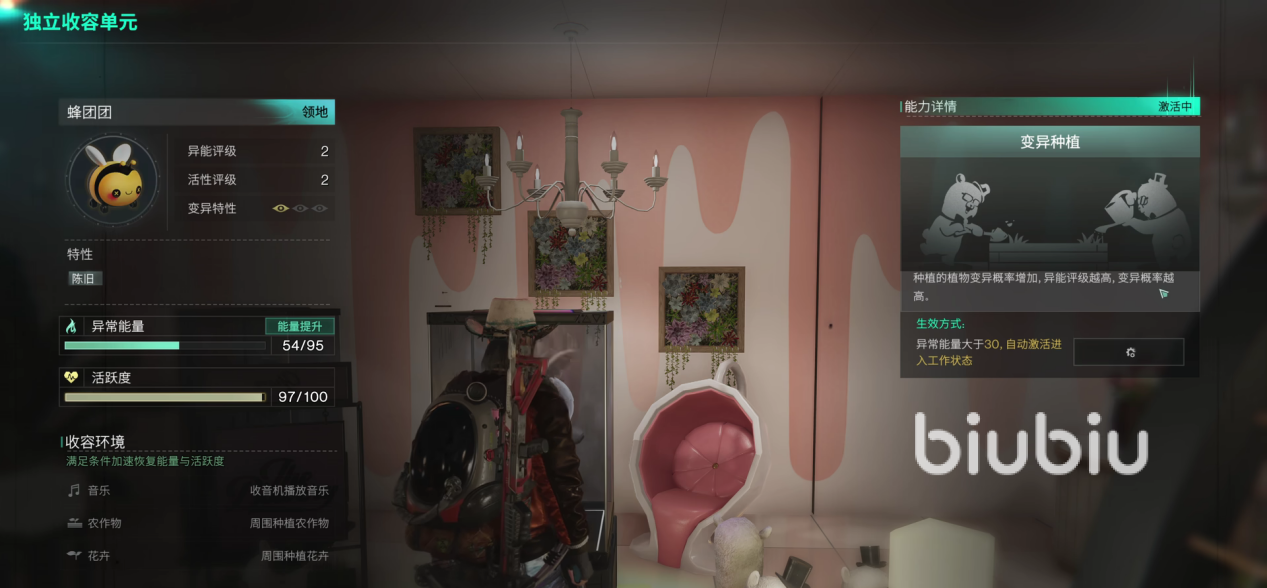 成功收容后,蜂团团将成为你的得力助手,为你的农作物种植带来增益效果。在收容过程中,建议将蜂团团放置在有音乐、农作物和花卉的环境中,这样可以加速其异常能量的恢复,提高变异概率。