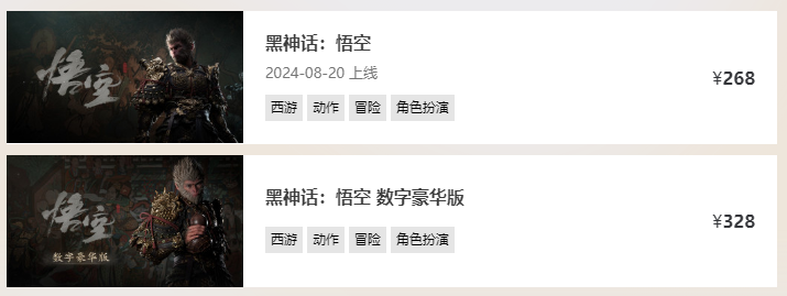 而数字豪华版则在标准版的基础上增加了更多内容,售价为328元人民币。它包含了兵器“铜云棒”、披挂的装备、珍玩“风铎”和游戏音乐合集(数字版)。以上赠送的内容不仅丰富了游戏体验,还增加了游戏的可玩性和收藏价值,对于游戏的忠实粉丝或者对游戏中额外内容感兴趣的玩家来说,豪华版无疑是一个更好的选择。