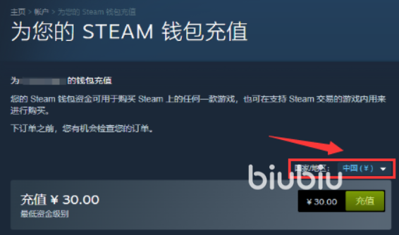 充值的各种档位都是不一样的,这里我们需要选择区域,这样才能够对应区服去进行充值。举个例子,我们大部分玩家都是处于中国区,所以我们在地区这里,就在下拉选项当中找到中国,这时候充值的货币就是人民币了,而对应购买游戏的时候,使用的也是人民币。