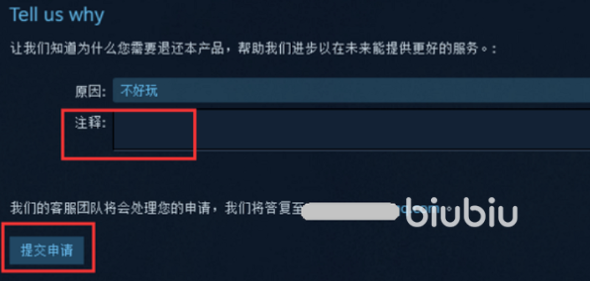 我们可以找到想退款的游戏,然后选择游戏与心中预期有落差这个选项,就进入退款页面了。它会要求玩家写明退还游戏的原因,大家详细备注一下,然后确认退款的金额有没有差异,都没问题之后提交申请,等待客服审核结果,通过就会退款到玩家的账户了。