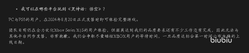 目前官方已经宣布该作将在2024年8月20日于全球发行,包含无论你是Steam还是其余平台都能同步玩到。不过Xbox版本目前已经宣布“跳票”了,因为还在进行优化以及适配,从定档的官方宣传图来看,基本和首发无缘。