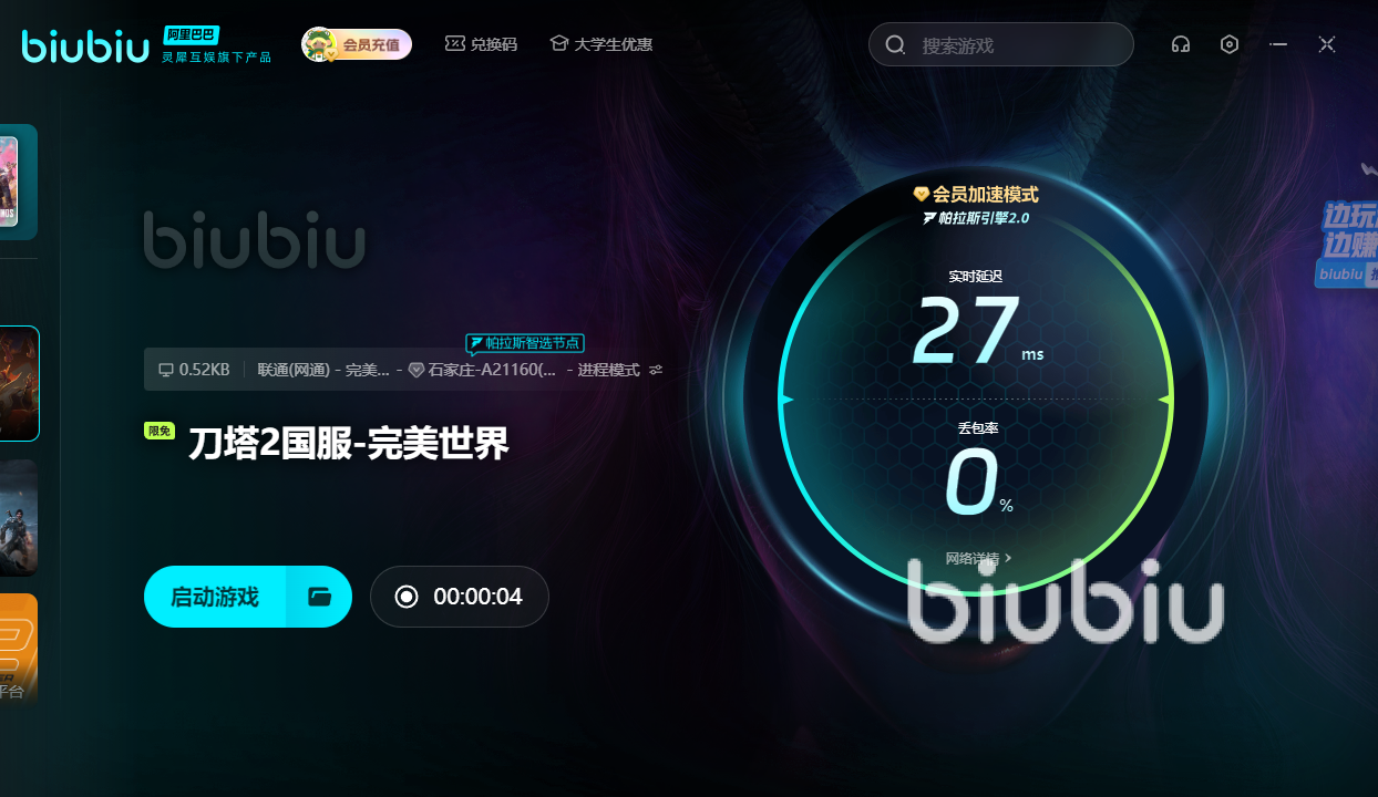 还有一种导致闪退的原因需要biubiu加速器为大家解决,就是网络问题,当网络环境特别差,数据无法正常加载的时候,大家进入游戏的瞬间就会导致程序未响应,进而就会发生系统卡死和闪退的情况,而该款软件有非常先进的帕拉斯加速引擎,能让游戏的网络运行环境得到极大的改善,并且没有用过它的小伙伴只要注册,就能领到24小时的免费加速时间作为福利,新老用户还都能享受到3天的免费加速时间福利,只需要在兑换界面输入【biubiu不卡顿】口令即可。