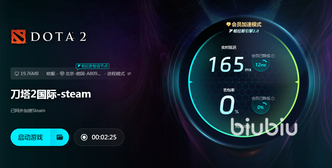 以上就是专业的Dota2加速器分享的内容了,还没安装软件的小伙伴现在赶紧行动起来。现在正值暑假,正是玩游戏的好时机,除了领用免费的加速时长以外大家充值biubiu会员也很划算,成为月会员以后就能享受一整个月的加速,随时随地畅玩游戏,全球游戏都在它的加速范围,想玩什么都能加速的哦。
