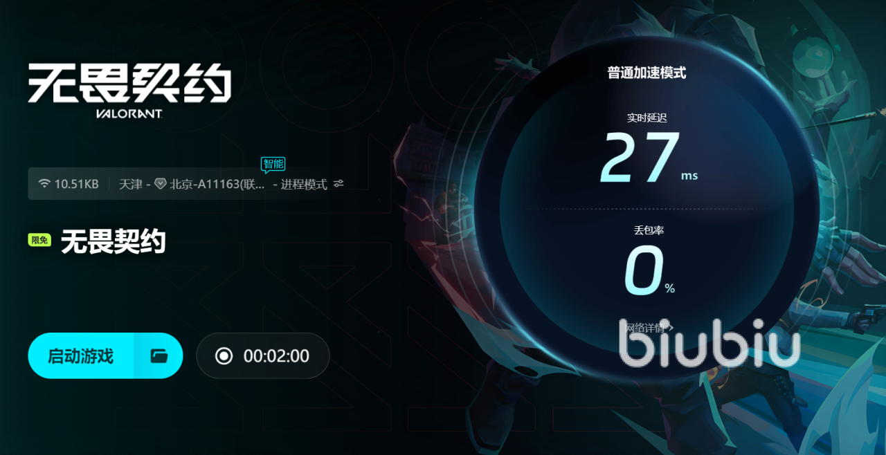 在biubiu上它拥有一个很大的游戏库,大家可以在这上面寻找自己要加速的游戏,无畏契约就包括在内。这款加速器它不需要任何的技术含量,它的界面是非常简洁的,而且操作也非常简单。很重要的一点是大家不用担心隐私的问题,这个加速器保障大家的隐私安全,大家可以放心的在游戏上畅游,用户也可以随时随地的享受加速服务,无论大家是在家中办公室还是旅途上,都可以为大家带来稳定的网络连接,让大家在线体验更加顺畅和愉快。