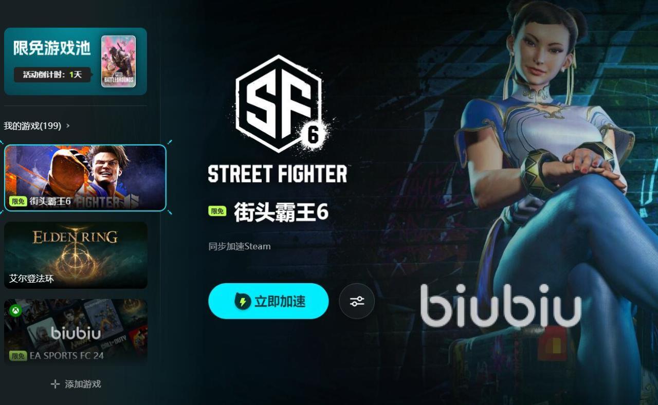 以上就是街霸6加速器哪个比较好,可以给街霸6加速去软件有很多,但最终的效果却各有不同,经过一番对比,biubiu加速器的性价比要更高一些,而且操作十分简单,之前用没用过类似的产品,都能快速地上手,享受到出色的加速效果。