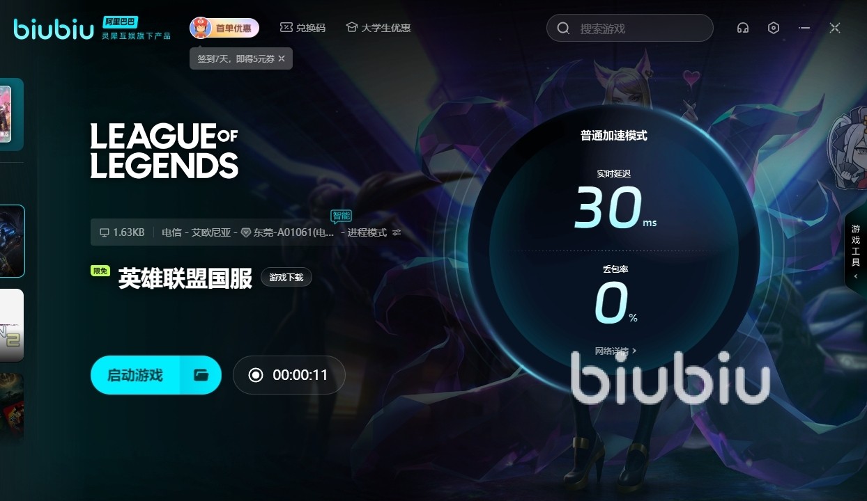 英雄联盟可不仅是在游戏玩法上具有竞技和策略意识,其社交和电竞方面也相当活跃,游戏定期更新新英雄和调整现有英雄平衡,比如最新发布的英雄“阿萝拉”不仅仅展示了独特的技能设计,更是大大的增加了游戏的可玩性,而想要让这些元素都很好的体现出来,在战斗的时候不拖队友的后腿,小编觉得去通过biubiu来优化还是十分合适的,其专线加速效果,也能确保大家的网络稳定。