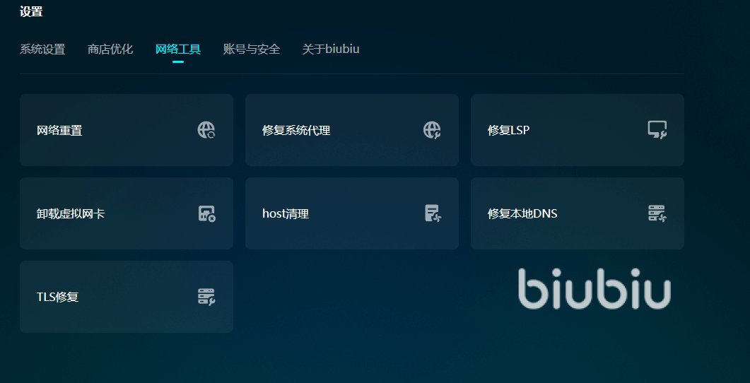 同时大家还能用biubiu里的工具进一步优化电脑环境,有时候就算网络很好也无法进入游戏,很有可能是电脑网卡出现了故障。biubiu准备的工具可以帮大家解决这些难题,优化以后就能获得全新的电脑运行环境,启动游戏更快更流畅,再也不担心闪退掉线了。