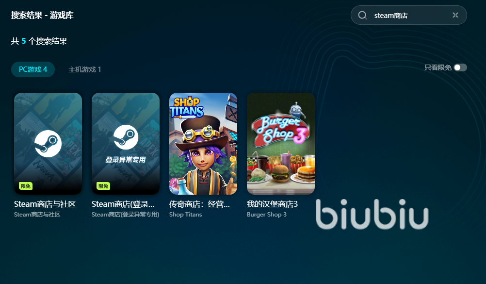 由于游戏是支持组队合作的,因此网络不好是游戏出现闪退的主要原因,在此小编建议大家使用biubiu的加速器。它可以稳定提升我们的网速,游戏将于8月6日上线,不过游戏是锁国区的,所以要用biubiu帮助我们切换是steam的商店地区,这样就能正常的查看游戏相关讯息了。