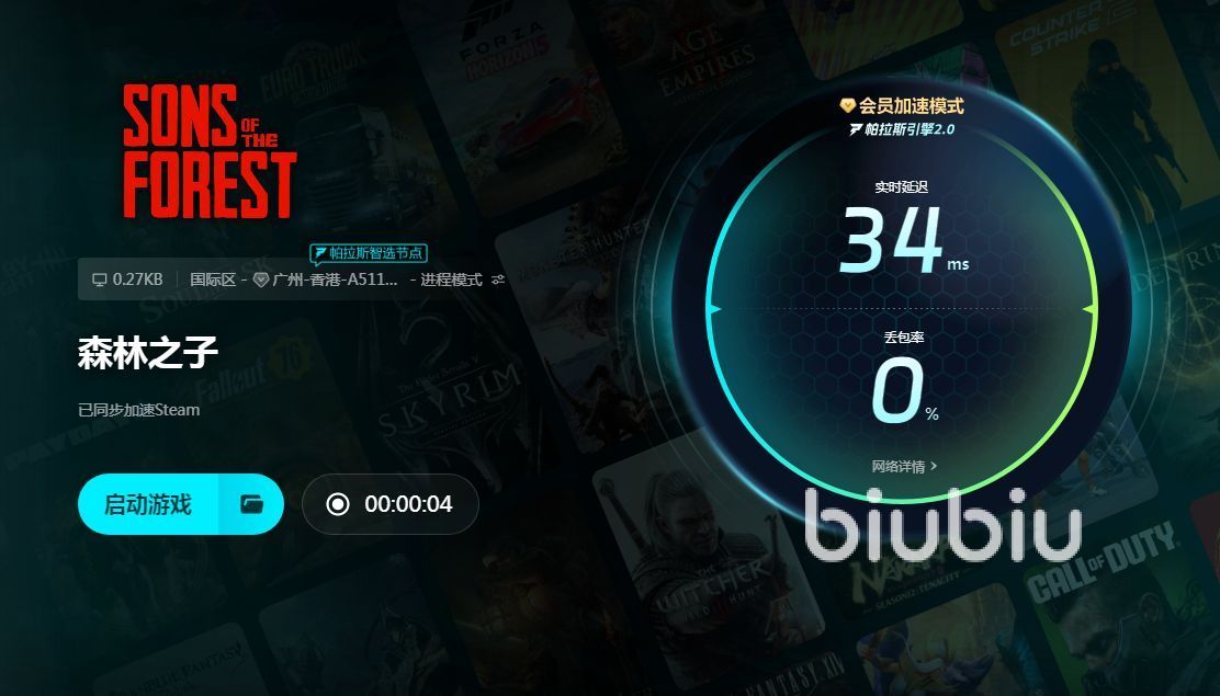 2024年08月06日 16:28 来源:亡灵离六尾1森林之子闪退需要怎么处理?这是一款大型的生存类型游戏,不少的玩家都非常喜欢其中的玩法模式,不过近来有很多人反应在游戏的过程当中会遇到很多的网络问题,都想着是否能够寻找到一款适合自己的加速器,专业的加速器是能够在游戏当中为大家提供稳定的网络环境,从而起到很好的优化效果,那么今天就来给大家好好的分享一款加速工具-biubiu加速器,如果屏幕前的你也有需要的话就跟着一起看过来吧。