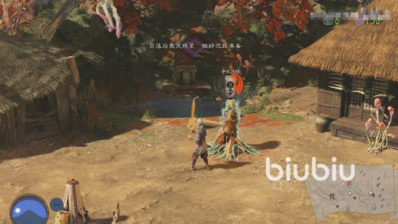 在解救村民的过程中,注意发现并净化周围的污秽。净化污秽不仅有助于恢复山村的和平,还能在房子旁边的神祠领取奖励。玩家需确保净化8处污秽,以完成关卡目标。随着夜幕降临,巫女将被饥神附身,主角需继续以魂魄形态存在。此时应提前准备好足够的结晶,以便在夜晚向巫女奉上,削弱饥神的力量。