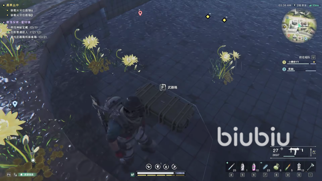 首先从霍特镇东南方向的马路朝北直行,在击败两个怪物后,会发现后方有个房子。在房内的水池子中,就可以找到第一个武器箱。这个武器箱位于室外,靠近水源,玩家在探索过程中可以顺路寻找。