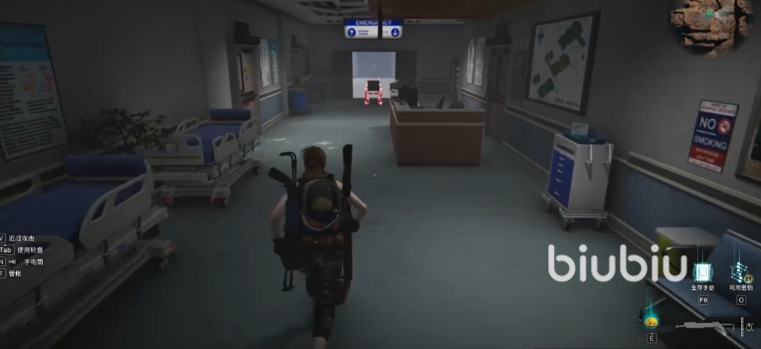 触发任务之后,进房子和保罗对话,对话完成后,我们跟着任务追踪来到代顿医院。在代顿医院牌子右侧,小地图11点方向直走,第一个分叉口右转往小地图2点方向,再到分叉口,转到小地图8点方向。然后在门口这里直接进去,上右前方的楼梯到二楼,就在楼梯正对的房间里面。