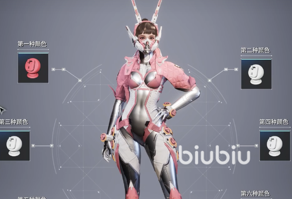 而备受大家喜爱的兔子装,则是需要我们花费五千的充值币购买终极邦妮礼包才能获得,它的初始是金属加上白色的盔甲。针对于这个时装,身体部位我们可以使用哑光粉与淡绿色,而因为游戏内一个染色包只能给同一个皮肤的一个部位使用,所以头部可以选择哑光红。