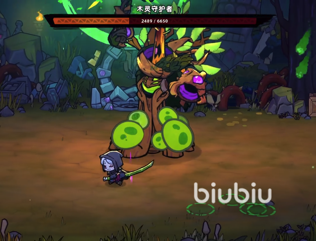 木灵守护者:这个boss有两种形态,第一种是悬浮在空中,以远程攻击为主,除了释放绿色的小球,还会用手中的巨斧攻击玩家。悬浮一段时间后会固定在地图中央,这时会不间断释放绿色小球,玩家可以使用远程技能进行攻击。另外这个boss还会释放可以禁锢玩家的陷阱,大家要注意躲避。
