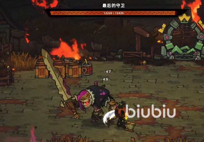 最后的守卫:手持一把巨剑的boss,主要攻击方式是巨剑,依靠劈、挥、斩对玩家发起攻击。除了近战攻击,他还会制造一个超大范围的圆形区域,蓄力一段时间后能够击飞玩家并造成高额伤害。这个boss坦度不高,同时技能释放也比较缓慢,还是很好打的。