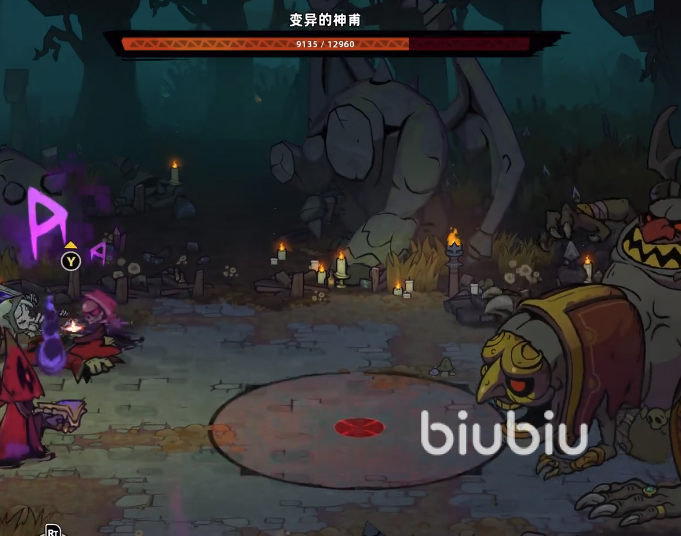 变异的神甫:这位boss占据了画面将近三分之一的位置,但是它并不能移动,只能在画面的右边进行输出。输出方式主要有右手锤击地面的范围攻击,还有召唤巨石砸向地面的技能。我们在靠近这位boss输出的时候,他会使用双手快速的拍击地面,伤害非常的高。