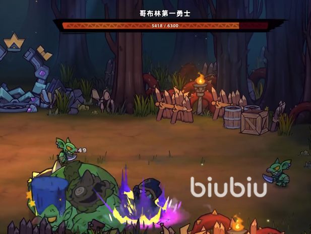 哥布林第一勇士:一位身形巨大的boss,技能比较多,先来看第一个。第一个是蓄力一小会,然后跳到空中再猛然砸下,地面会有圆形的技能技能提示。这个技能比较好躲,在它跳完后可以绕到背后进行攻击。第二个技能是三段冲刺,冲刺后会进入短暂的虚弱期,可以趁此机会进行耗血,这里要注意的是冲刺伤害特别高,千万别给撞到。此外该boss还会不断召唤巨石和小哥布林,大家记得走位不要停。