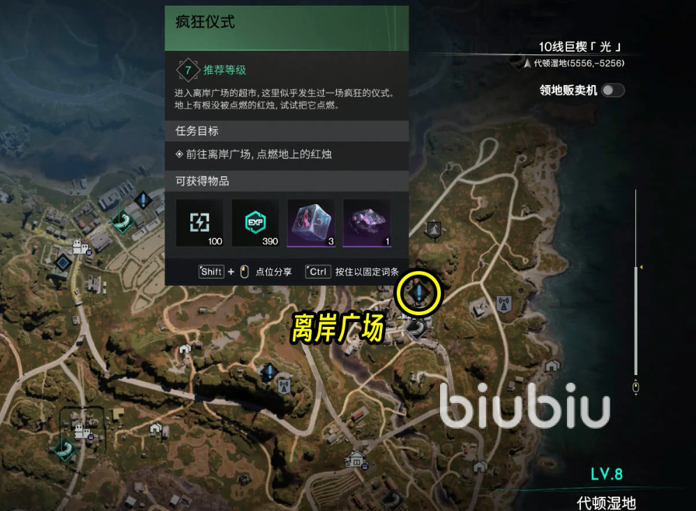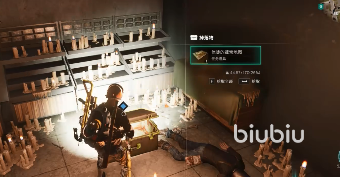 玩家先在前往离岸广场,可以看到地图上的感叹号,就能出发任务。之后你就会看到一个信徒的尸体,点燃蜡烛之后会出现一个宝箱,里面有一张藏宝图,获取之后进行下一步。