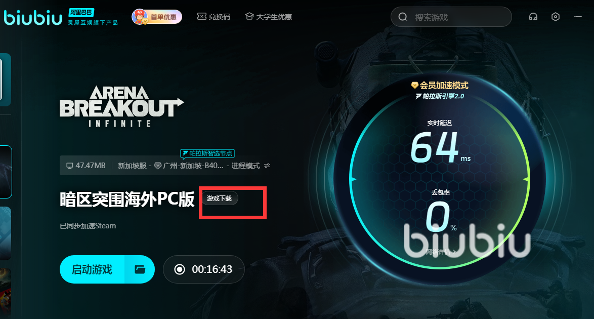 由于海外版的服务器设定在海外,如果网络不好的话,我们甚至无法进入到它的官网,更别说下载可能会遇到的速度过慢或者下载失败的问题了。想要解决这个问题也是很简单的,我们只需要使用了biubiu的加速器上,找到这款游戏进行提速与稳固连接,接着就可以在加速界面看到“游戏下载”四个字了,点击进入以后就可以正常的下载或者浏览相关的内容了。