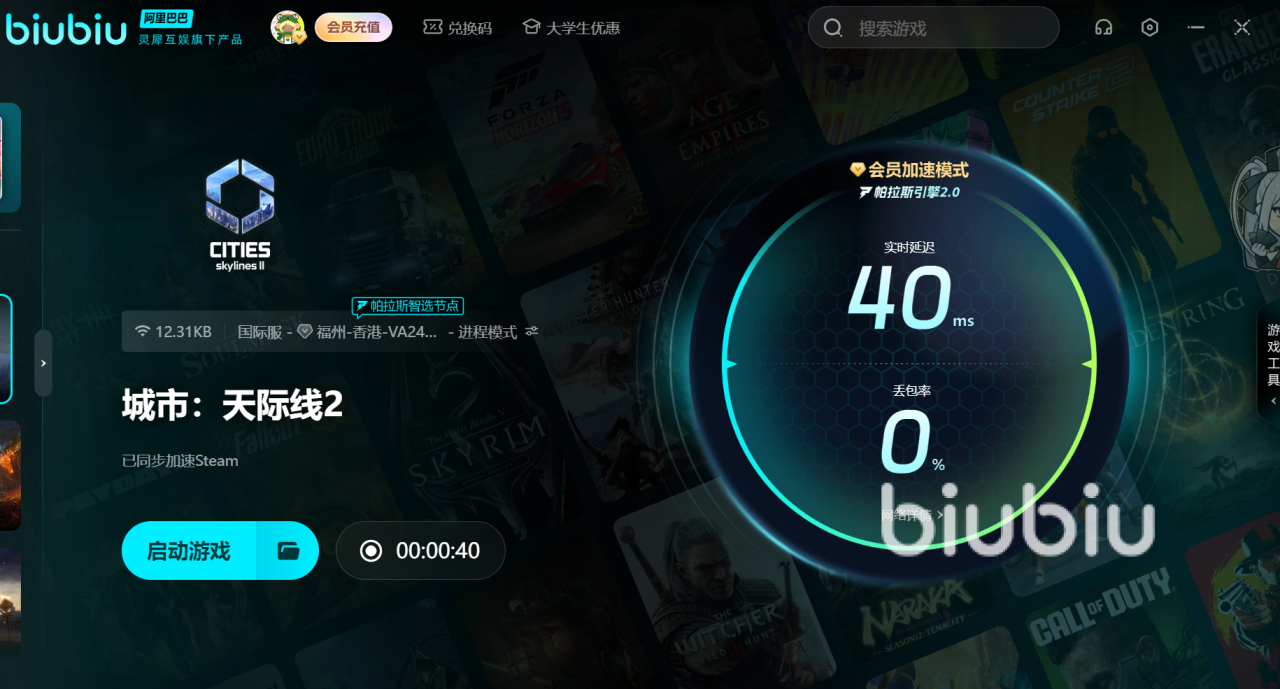 城市天际线2的玩法自由度相对是比较高的,玩家将作为这个城市的设计师建造出很多有创意的高楼,当然也可以建造很多的商店以及小屋,为这个城池增提更多的文化气息,但是部分玩家在游玩的时候很容易出现闪退,导致城市建造一半没有保存,导致很多的材料缺失,十分影响自己的游玩体验,那不妨使用一下biubiu加速器,可以让天际线的网络变得更加顺畅,并且新人在注册后便获24小时免费加速,以及新老用户使用兑换码【biubiu不卡顿】可获3天免费的使用权哦!