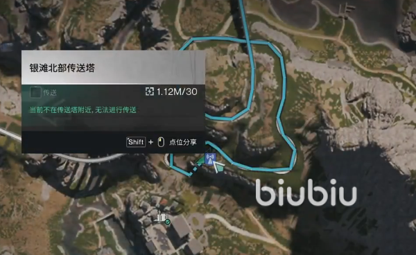 其次我们可以打开地图,来到银滩北部传送塔。在垩峰山407,6207的坐标处会有一个桥。这个桥的上下左右都是污染区域,如果选择桥下靠水区域的话有可能会有鳄鱼,桥上则会有大量的平原,相对安全一点。
