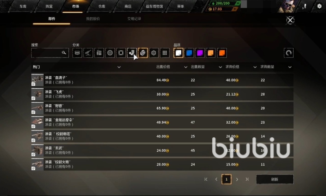 同时,如果有着我们所需要的配件迟迟刷不出来的话,那么我们也是可以选择去市场进行购买。在看到所需要的配件后,我们首先需要了解这个配件的具体价格是多少,之后选择一个最合适的价格进行购买。