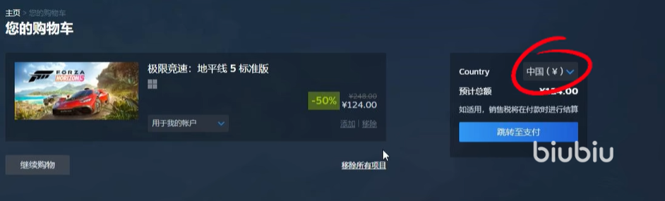 最后支付的地方选择你喜欢的支付方式去付款,不过在这个地方需要提示一下大家,如果是steam国区的账号右侧是显示中国两个字,如果显示的不是中国,那么需要伙伴们打开加速器然后停止加速,然后重新打开购物车选择刚才的游戏添加到购物车就可以了。