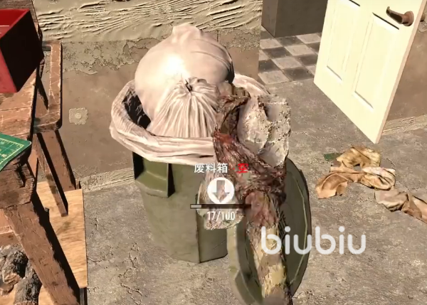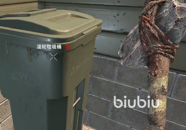 我们如果出生点在城市里面的话,那么先要找到房屋电表的位置,在那片区域一般会放置着滚轮垃圾桶。在找到它后使用石斧或者大锤进行破坏,一般这种类型的桶在破坏后可以获得废聚合物。