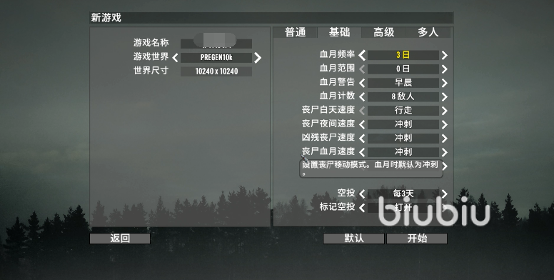如果你感觉游戏的难度太高,也可以在开始游戏时将世界设置中的血月彻底关掉,这样从此之后丧尸们也不会暴走,玩家的生存压力也会低不少,玩起来也会更轻松。