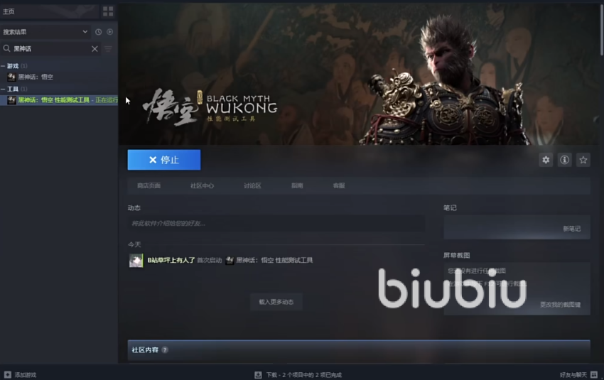 玩家可以在Steam搜索《黑神话:悟空 性能测试工具》来找到这个软件,安装完毕之后直接打开,直接点击性能测试就会进开始对游戏的DEMO场景进行一次场景渲染。全程即时演算来模拟游戏的运行,你可以以此来判断自己的设备运行效率。