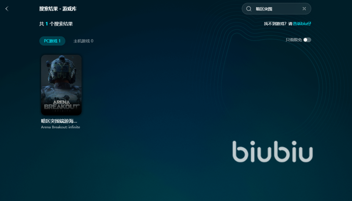 暗区突围PC版加速器推荐不知道大家还满意吗,它们已经针对暗区突围PC版推出了专区,大家打开加速器可以在首页看到对应专区。在这里除了能加速游戏外,还可以进行正版的游戏下载,避免大家下错游戏。如果你还未下载游戏的话,不妨使用biubiu来看一看。