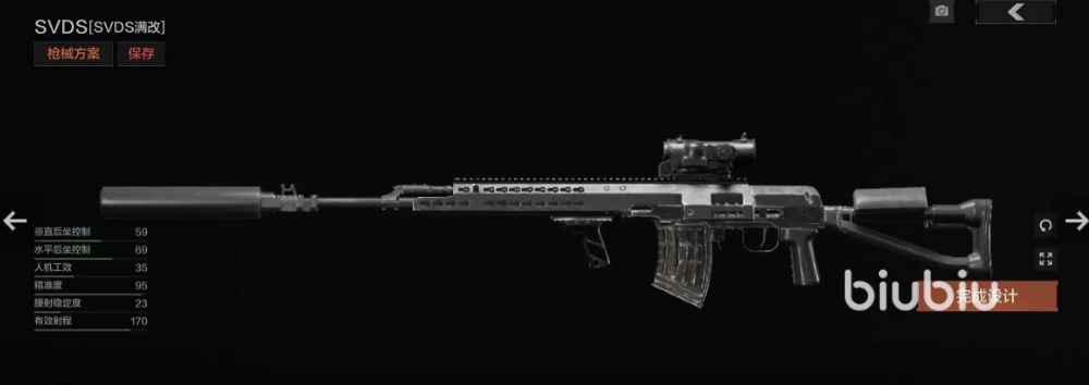 SVDS:半自动枪械,手感会有一点顿,子弹性价比不错,射速偏慢,中近距离很吃命中率。