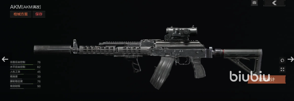 AKM:用的是7.62口径的子弹,后坐力比较大,但是配合上适合的配件,是可以降低后坐力的。射程较远,使用起来手感不错。