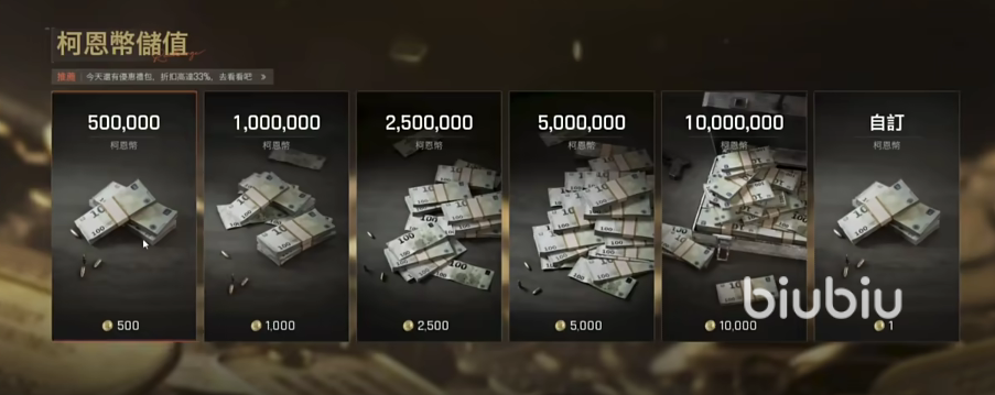 我们在登录好游戏之后,是可以看到主界面的右上角会显示玩家有多少金币的。在金额后面是有加号的,可以点击第一个,就进入了金币兑换页面。它会提示柯恩币储值兑换比例是多少,如果我们的兑换币不够,就要进行充值。