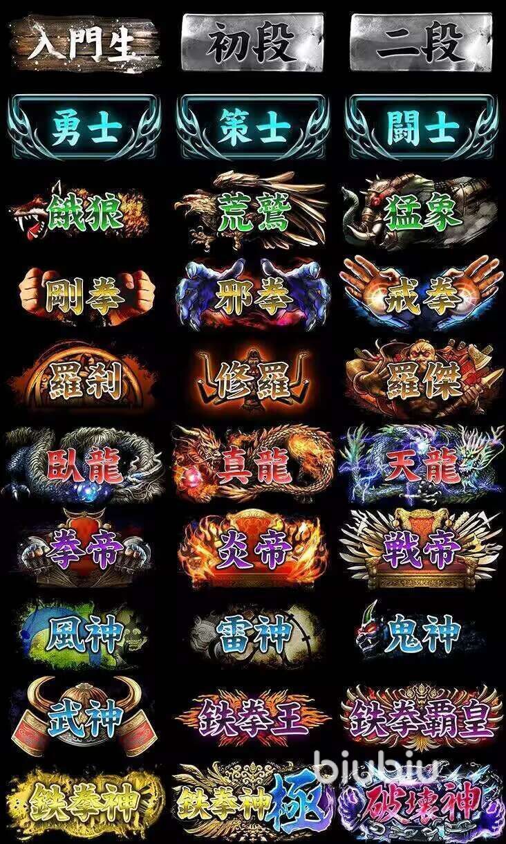 本作的段位最低为入门,最高为破坏神,具体的段位列表可以对照插图来查看,玩家在天梯排名时,会根据当前的段位来匹配实力相近的对手,每次战斗结束后也会显示当前的段位情况。