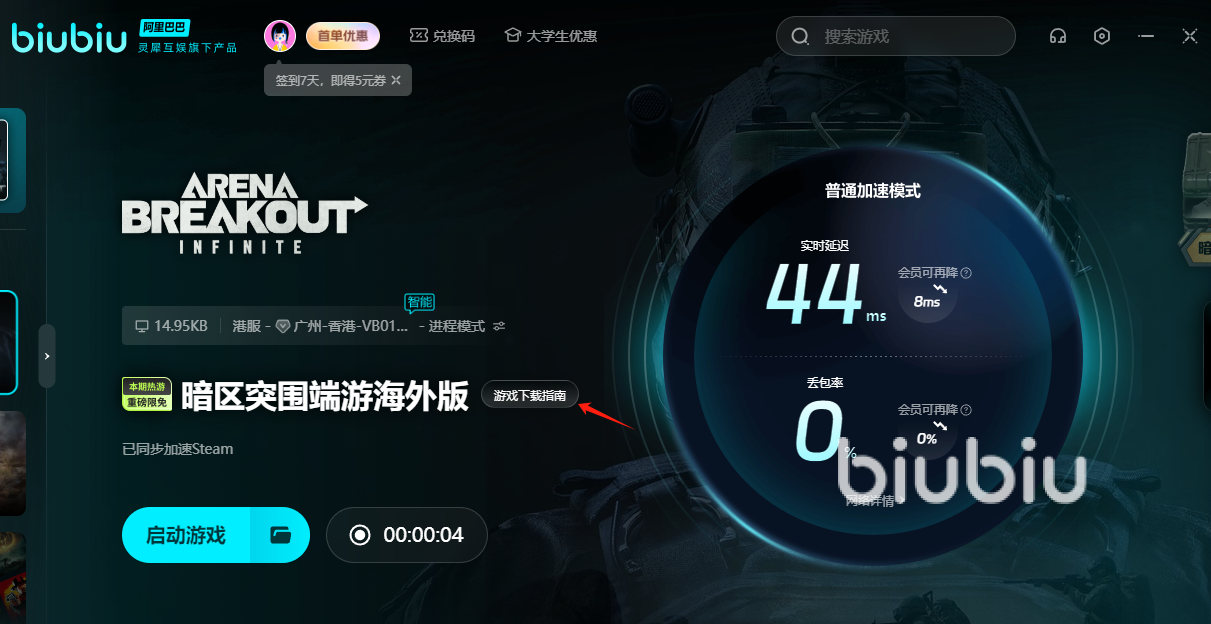 大家现在用可以享受的优惠可是很多的,端游版本上线后,biubiu是给他提供首月限免加速的服务的。另外biubiu本身就有先享后买的功能,新人登录之后就可以领取到免费的24小时加速时间,另外一个兑换码【biubiu不掉线】也是对新老用户开放的,兑换可得72小时免费加速时间,等于新人可以用到96小时哦。