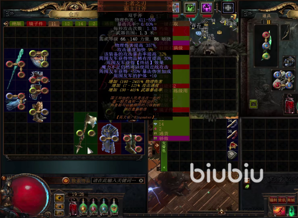 有时候会遇上想给守卫的装备显示无法放入,这其实是网络波动导致的延迟或卡顿,只需要一个biubiu加速器就好啦。biubiu加速器为新人献礼,注册即得24小时加速时长,使用【biubiu不掉线】兑换码,所有账户再享72小时,新人同享福利,加速时长跃升至96小时,【8月5日起限时免费加速流放之路游戏,结束时间以biubiu端内时间为准】游戏加速新体验!