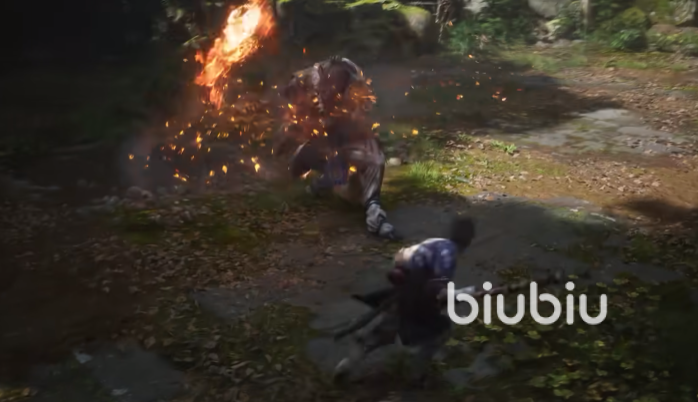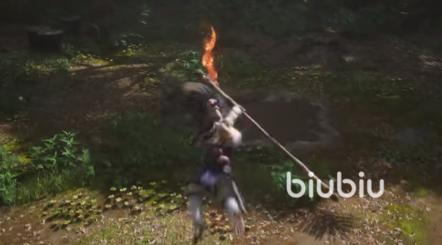在触发完战斗之后刀郎会有开场白,说完之后就会提起手中的刀向前旋身劈砍,要注意垫步往左躲开,火花也要一并躲掉。接着boss会回身继续进行一个劈砍,还是往左进行躲避。这时候怪物第一个招式就施展完成了,会进入蓄力时间,此时就是进攻的实机,使用轻棍向前戳打。