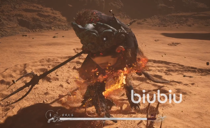 前期黄风怪一只手会抱着佛头,动作没那么敏捷,大家要抓住这个时机进行无伤耗血。血量打了五分之一后,他会丢开佛头,进入全力输出状态,这里他会借助黄沙幻化身形,大家要及时拉开身位关注它的动态。
