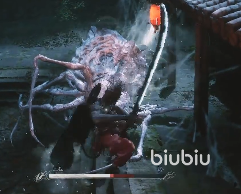 游戏里面第四章一开始我们是在一个箱子之中被抬过来的,在剧情动画之后我们便可以自由行动。前面的小妖怪基本上两套攻击便可以将其带走,之后我们一路往庄子里面走,进入朱家庄。之后在对话后我们迎来第一位BOSS,二姐。