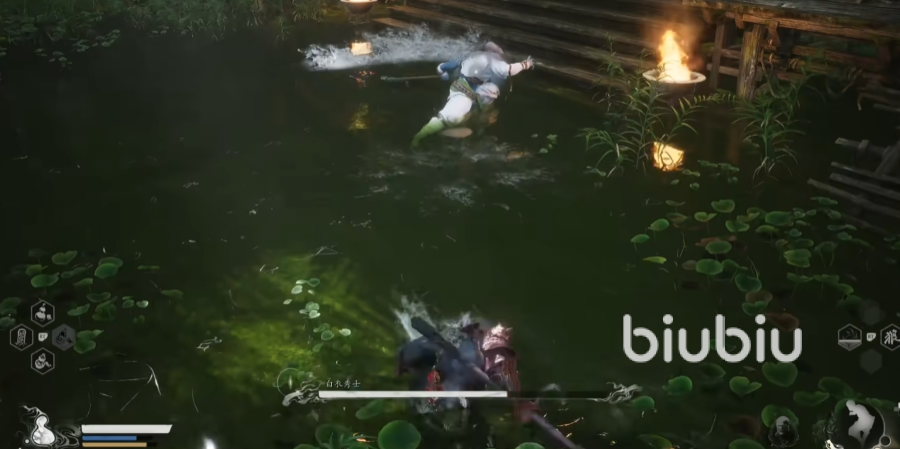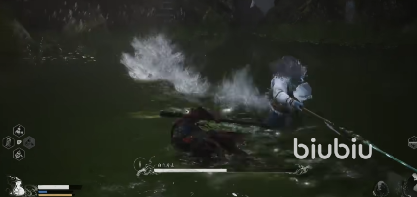 开局就可以用定身术搭配幽魂直接砸掉水蛇一大截血量,因为这个boss特比灵活直接用幽魂砸的话容易打不中,所以要配合定身术使用。对战白衣秀士的时候一定要注意他的连招,一般会以突刺作为结尾,当收枪向后蓄力的时候就可以翻滚了。