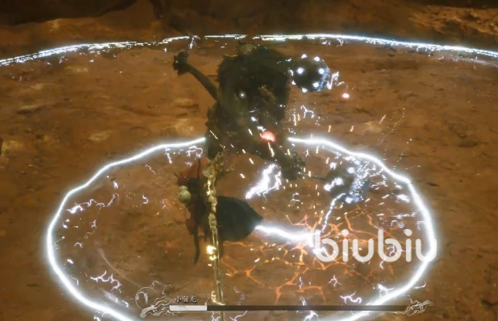 飞龙鳞片是触发隐藏boss小骊龙的道具,有了这个道具后传送到枕石坪,右拐上楼梯能听到有人在念经,和他互动后就能进入流沙瀑布,打小骊龙,这个小骊龙捶地的冲击波不是很好躲,可以选择立在棍子躲避。