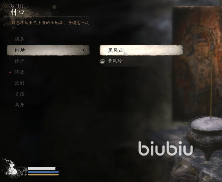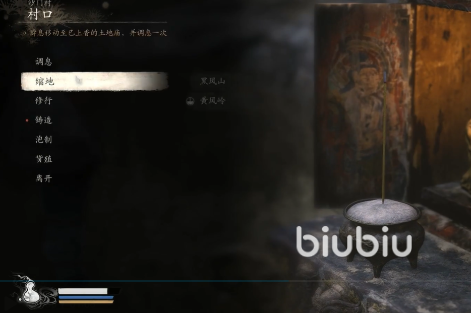 不错黑神话的传送机制还是人性化的,沙口村的各个关键地方可以进行传送,这样就不需要来回地跑了,玩家点击传送以后就会瞬间来到另一个土地庙的位置。