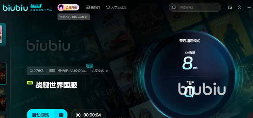 现在这款游戏还拥有众多的优势,例如新用户在完成注册后可获得24小时新手福利。在平台页面上输入兑换码【biubiu不卡顿】,可以在24小时的基础上又额外得到三天免费加速时长,用户结合这两种方法可以免费96小时。可以在游戏中尽情地享受海上作战,不需要担心游戏卡顿。