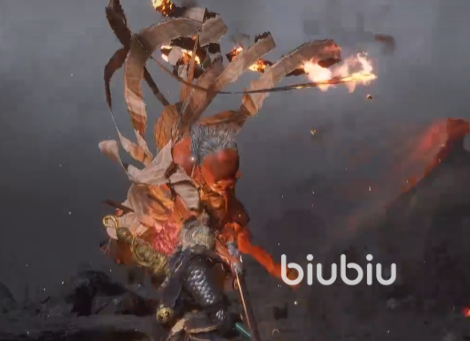 在来到二阶段时,它会进入到罗刹状态,这个状态下它的攻击模式会发生变化,攻击招式会变多,而在这种情况下前面的戳棍就能发挥出作用了,大家可以一直用戳棍拉开身位,去消耗它血量。