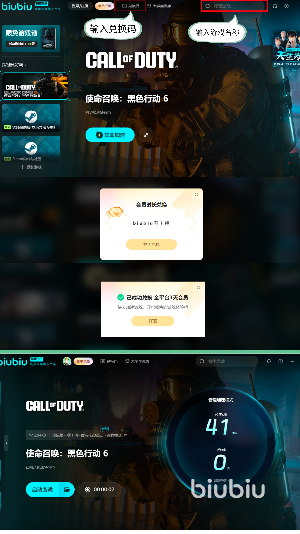 如果担心自己游戏体验过程中会遇到不好的问题,比如闪退和卡顿,就可以用加速器提高自己的游戏环境,比较推荐biubiu,很适合新玩家,因为有免费24小时加速福利,此外还能用兑换码biubiu不卡顿再兑换三天的加速时间,老玩家也可兑换,在8月28日-9月9日期间还能给该游戏免费加速。