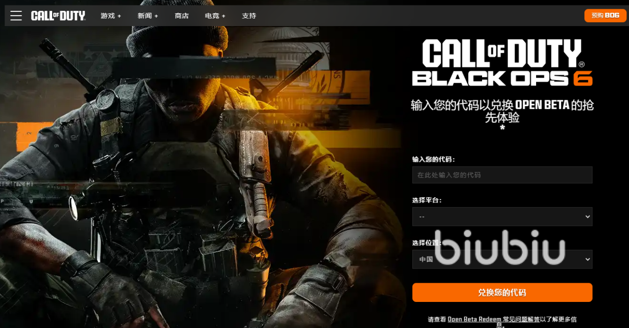 第二种方法,注册动视账号。这种可以绑定玩家游戏账号,如果是其他途径获得的测试码,那么需要使用此方法。而且由于动视官网在国内未直接设立服务器,为了顺畅访问和注册,也可以先打开biubiu加速器改善网络。之后需要打开官方网址callofduty.com/betaredeem,直接在这里进行预注册。