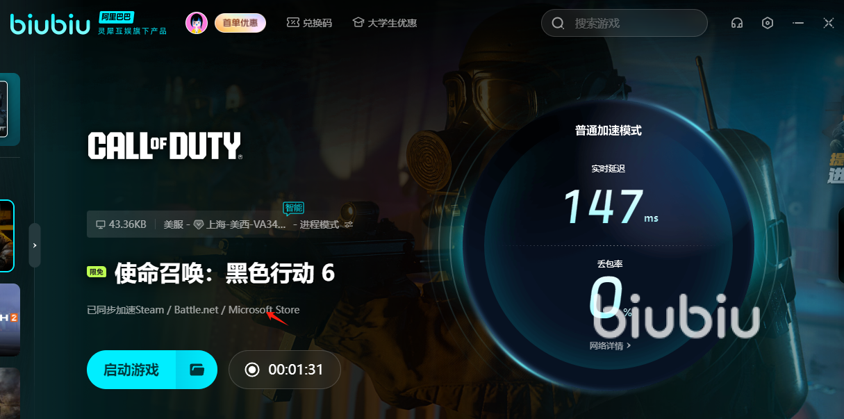 各位现在用上biubiu可是能参加不少福利的呢,【8月28日-9月9日限时免费加速《使命召唤黑色行动6》】的活动正在开展。除了对于这个游戏有福利,biubiu还给新人很多福利时间领取呢,新用户登录就有免费的24小时加速时间哦,另外按照下面的图示步骤输入口令【biubiu不掉线】,所有用户都能拿去换72小时加速时间,等于新人可以用96小时了。