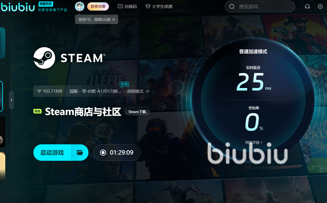 并且加速steam平台是完全免费的,新用户只要下载并注册这款加速器,就能马上得到24小时的免费加速,再通过输入兑换码【biubiu不掉线】,能再次获得72小时,这样新用户叠加起来一共能获得96小时的免费加速时长,真的很给力。